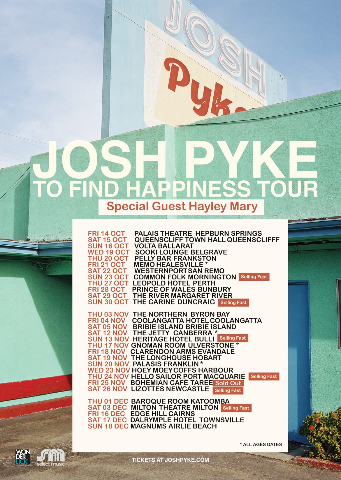 All over the east coast of Australia with a smattering of festivals to bookend the tour.