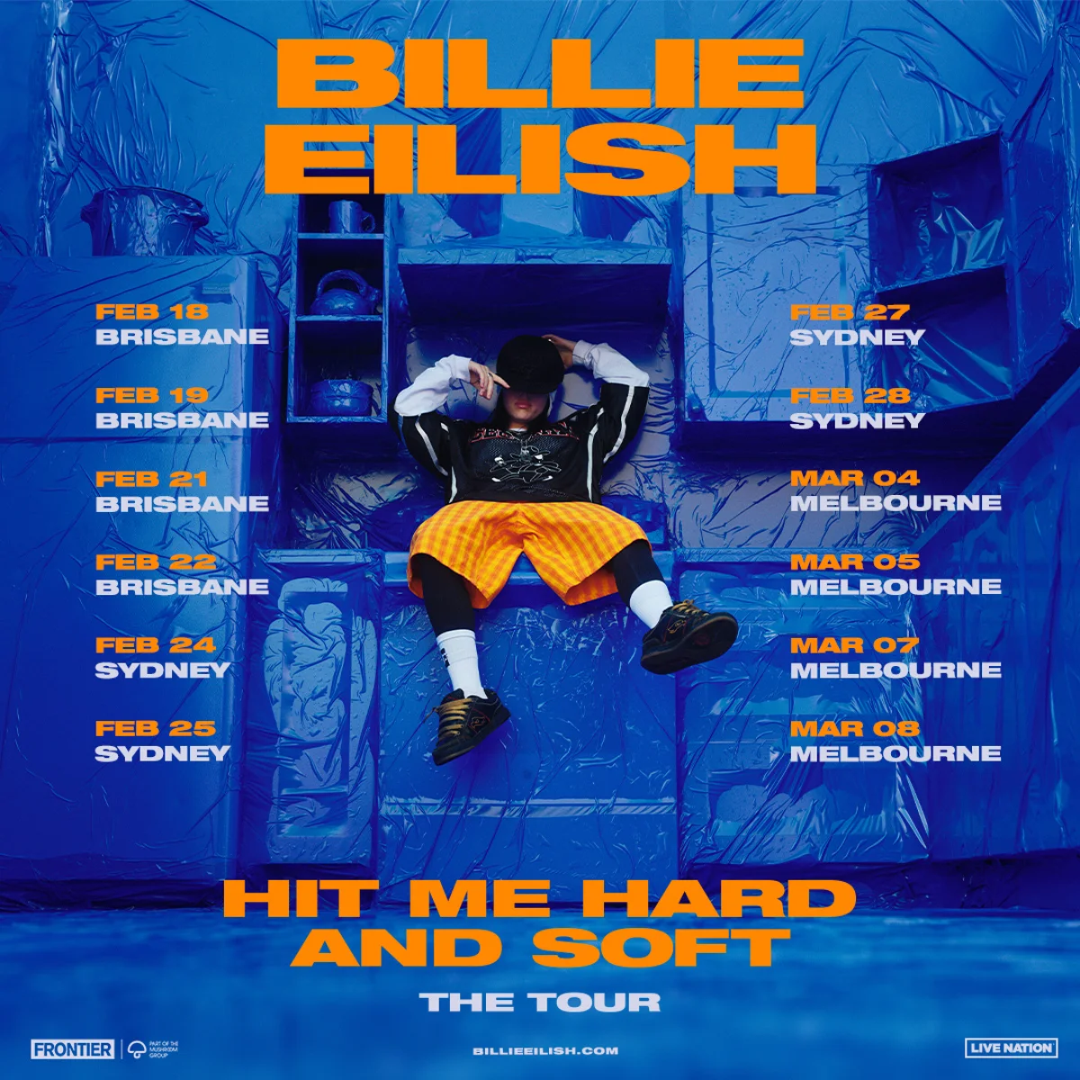 Following the news of her highly anticipated third studio album HIT ME HARD AND SOFT, set for release on May 17 (pre-order/add/save here), Billie Eilish has announced Australian arena dates, produced by Live Nation and Frontier Touring, for her HIT ME HARD AND SOFT: THE TOUR. Starting in North America in September 2024, Eilish will embark on an Australian leg in February 2025, ahead of her European, U.K., and Ireland arena shows. For a full list of tour dates, see below or visit billieeilish.com.