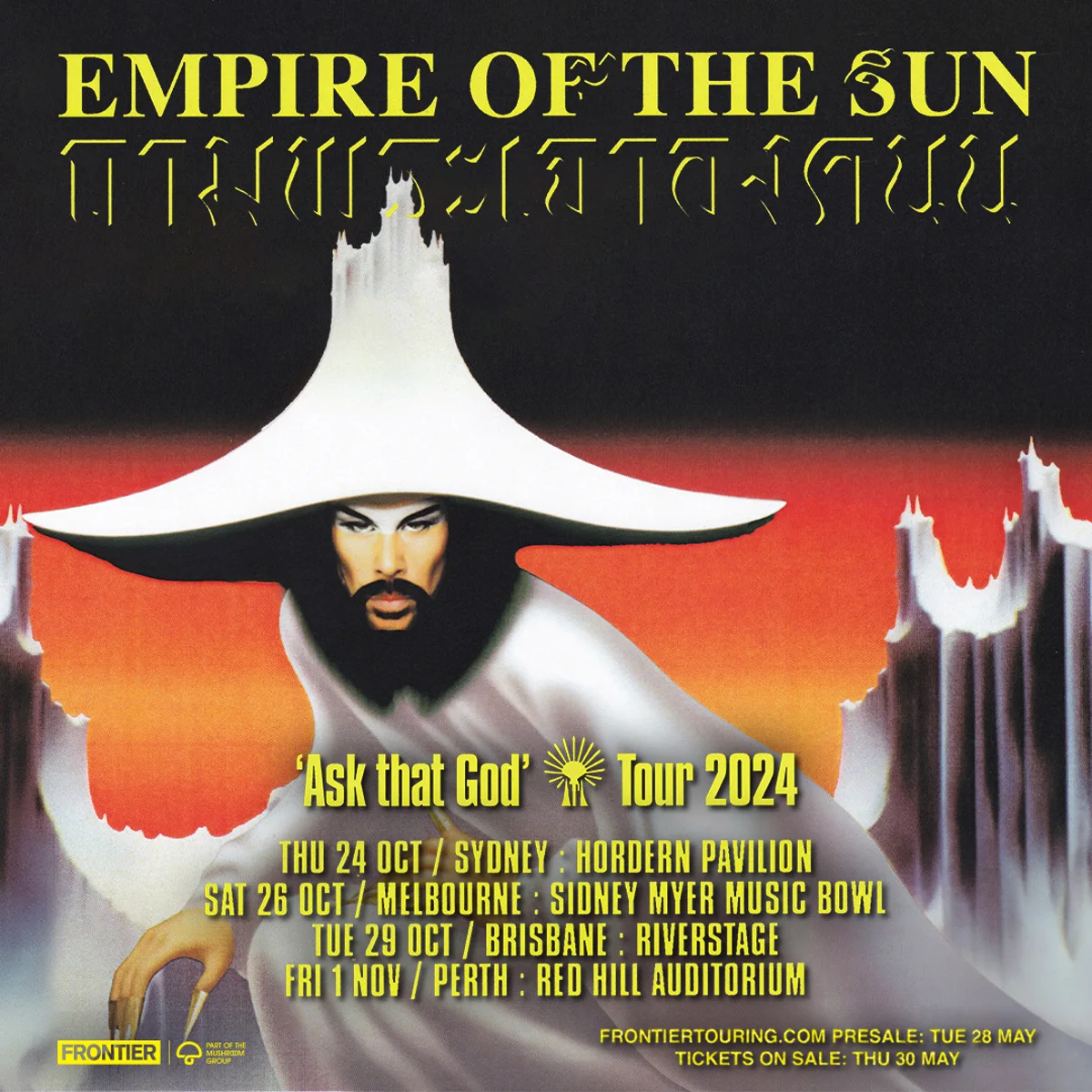 Frontier Touring are psyched to announce the multi-platinum astral wizards of electro-pop, Australia’s own, Empire of the Sun ‘Ask That God’ Tour for this October & November.