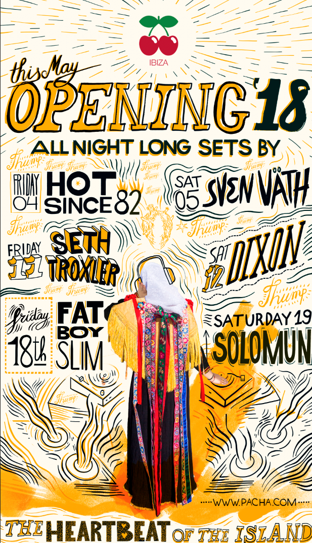 Pacha Ibiza is back with 6 opening parties over 3 weekends featuring headliners: Hot Since 82, Sven Väth, Seth Troxler, Dixon, Fatboy Slim and Solomun each