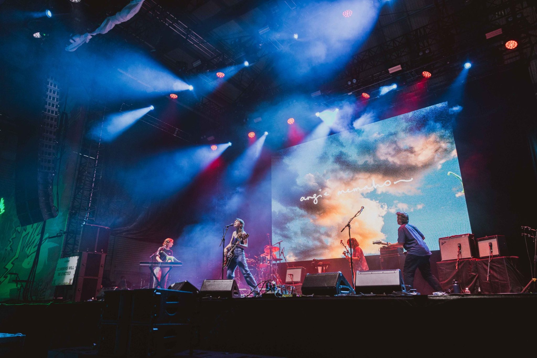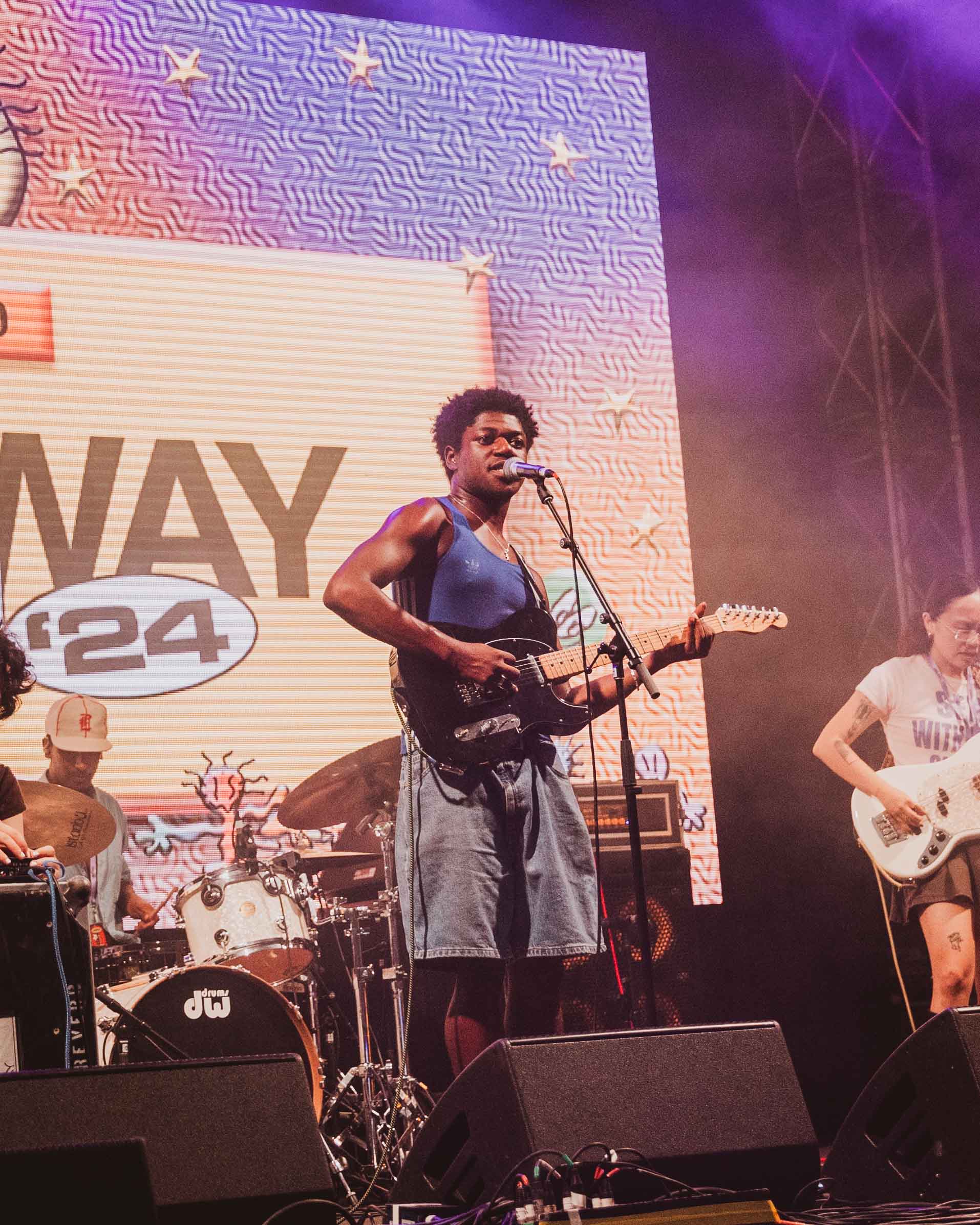 Walking through the entrance, we were welcomed by a cooling mist spread over the whole outdoor area; hordes of young people clad in their jorts, vintage button up tops and doc martens dancing under the sun showers while the music from the four main halls thundered around the venue. We made our way to the first stop of our schedule, the Everything Ecstatic stag featuring Western Sydney’s very own FRIDAY*, one of Sydney’s hidden gems in the local music industry and soon to be superstar. FRIDAY* has made his way through the ranks of Sydney’s underground scene and proven himself time and time again that he is here to stay. Songs like ‘Beaming’ that were reminiscent of a teenage summer and a surprise guest spot from Dylan Atlantis, another local hero, on ‘Concern’, to a spell binding performance of ‘Radiohead’, the audience screaming “I can’t forget about you – I don’t know if you want me to” as if we had all hit the climax of a 2010’s coming-of-age film. FRIDAY* provided the perfect start to what we knew was going to be an unforgettable day.