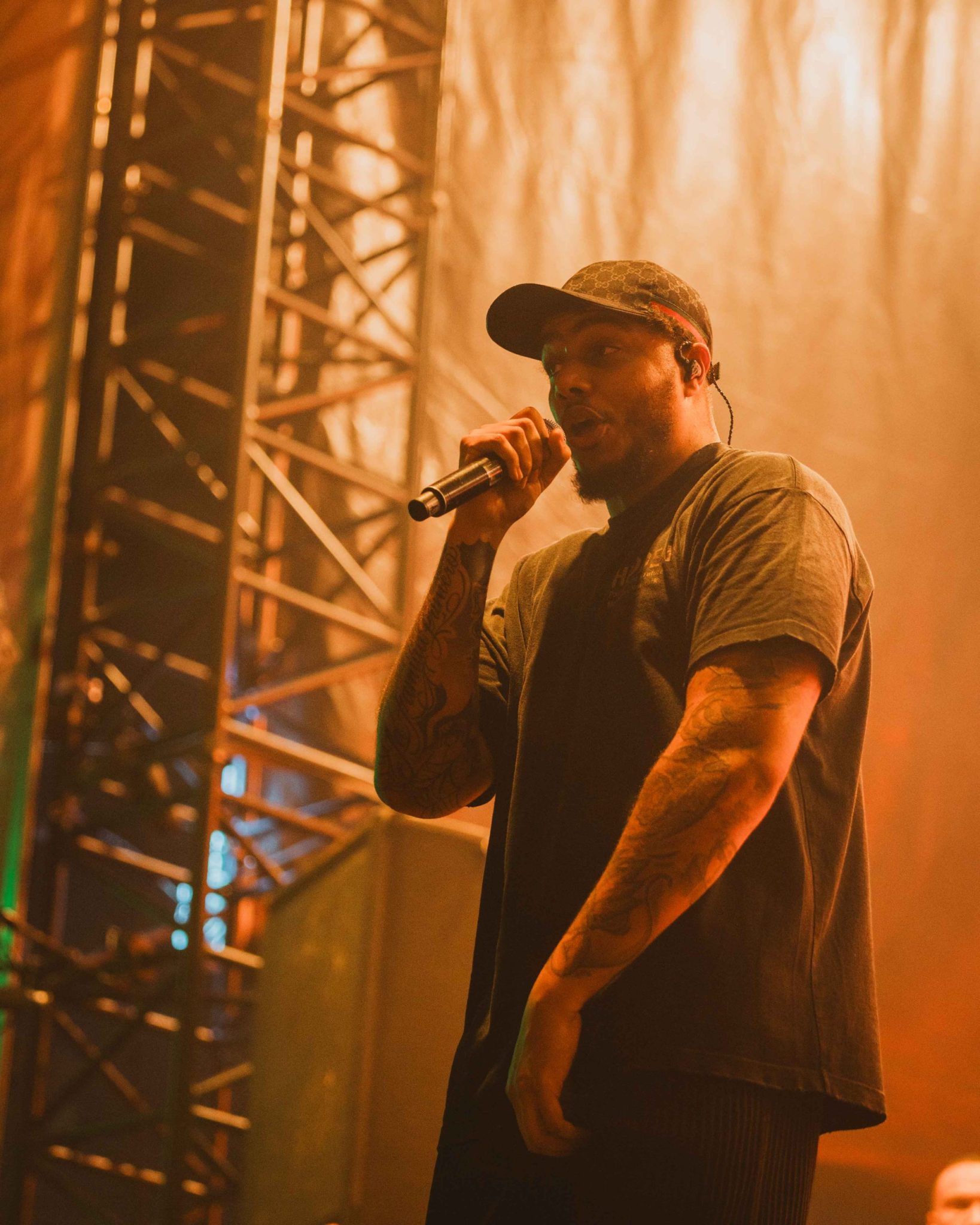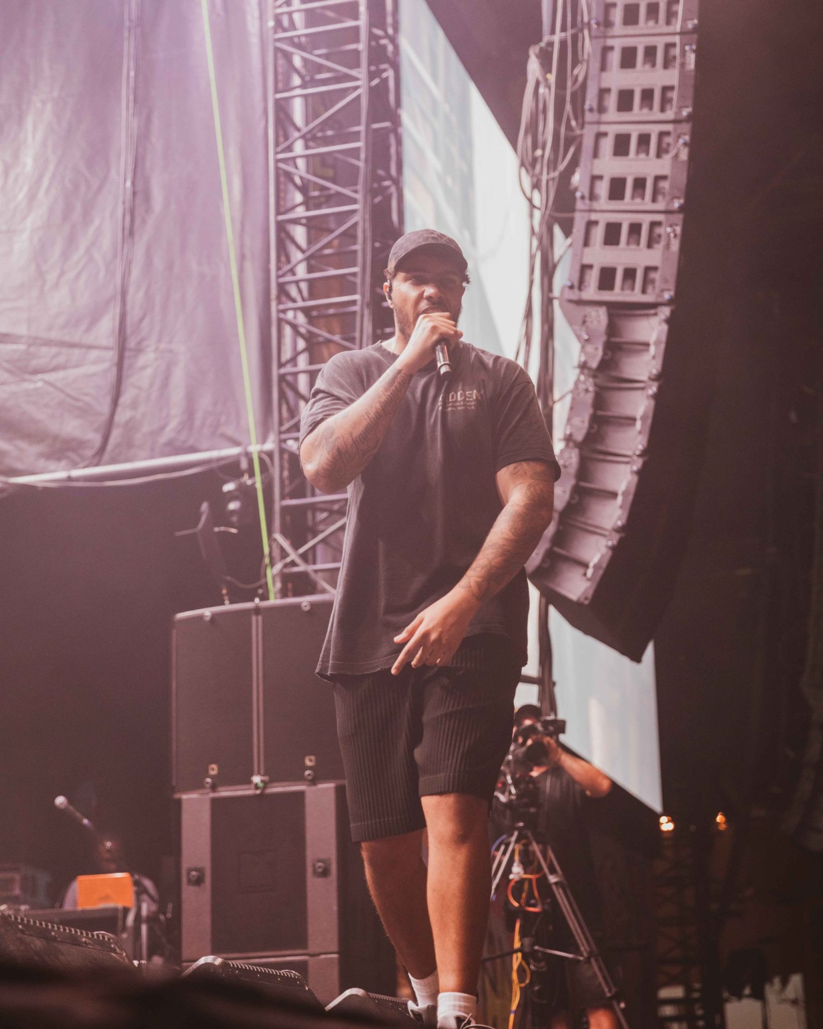 We then went back into the main hall to catch a glimpse of Cordae, who was bouncing around the stage in his stylish fit, being as humble as ever as he led the crowd through his anthemic rap hits such as ‘RNP,’ ‘Chronicles’, and even a tribute to the late Juice WRLD with their Lyrical Lemonade directed track ‘DOOMSDAY’. He then proceeded to spend some time walking through the crowd after his set, aiming to meet as many of his fans and spend some time getting to know everyone, a rare sight to see with names as big as his.