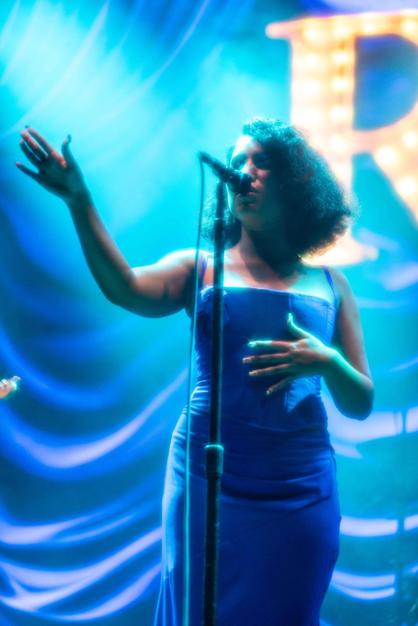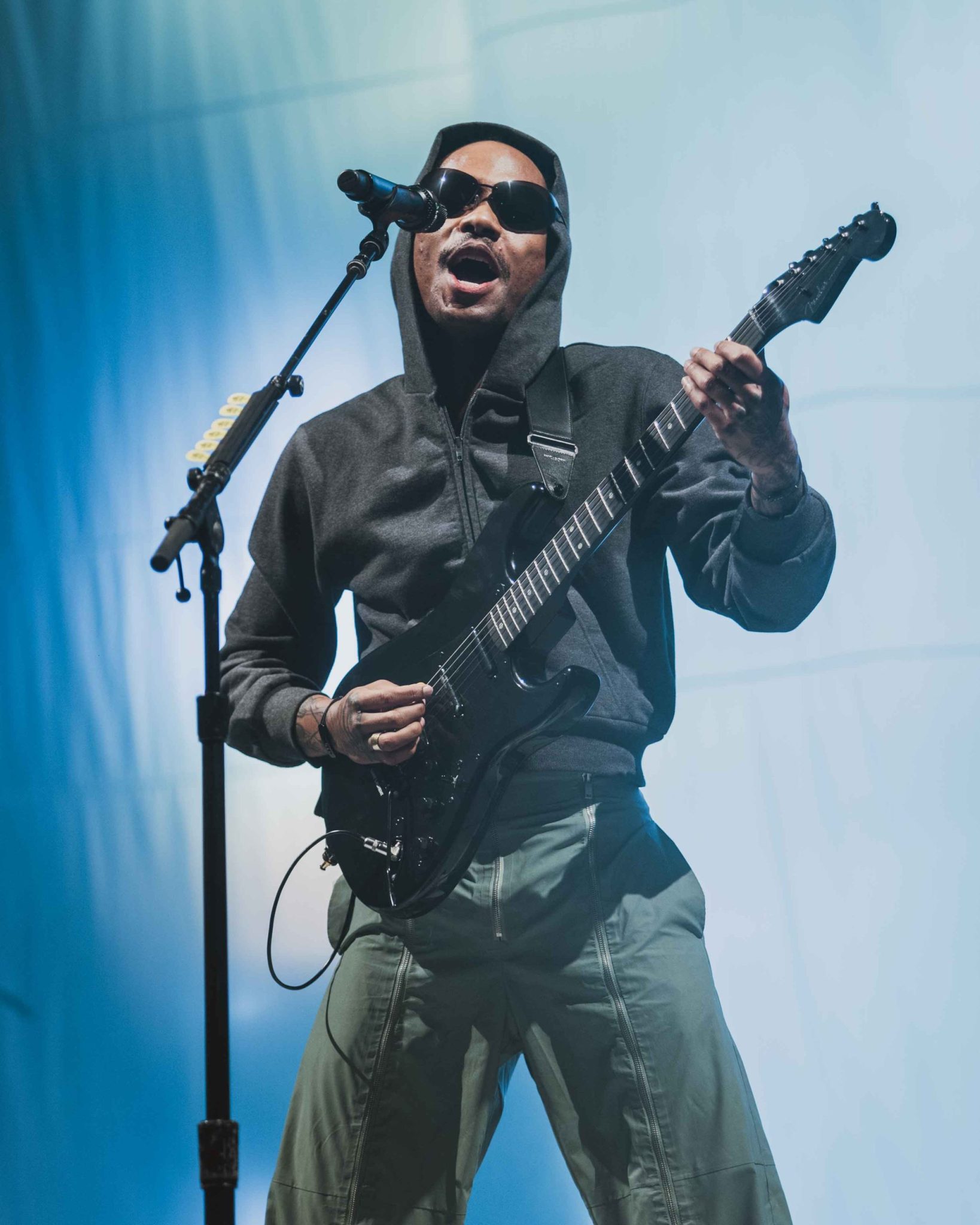 Then as the lights dimmed, a curtain was drawn as Steve Lacy’s familiar drone to his intro song ‘Static’ began to hum through the stage. Lacy then quite abruptly burst into a cover of ‘Killing in the Name Of’, a move that was a welcome surprise to everyone as Steve pranced around on stage in his hoodie and oversized sunnies combo, against all the “take it off” chants happening around him. He then joked around with the audience saying, “I’m so sorry for last night” (in relation to his poorly received Brisbane Laneway performance) and “I’ll never leave you again Sydney”, sounding like a character from his 2022 album Gemini Rights apologising to a loved one that he had wronged, before fittingly heading into his song ‘Helmet’. The rest of Lacy’s set was like a cool breeze through his discography, and to answer the question on everyone’s mind after a certain chart topper was excluded from his previous set, ‘Bad Habit’ finished his performance followed by the song that made its way onto everyone’s 2017 playlist ‘Dark Red’, pleasing both long-time fans and newcomers to his music.