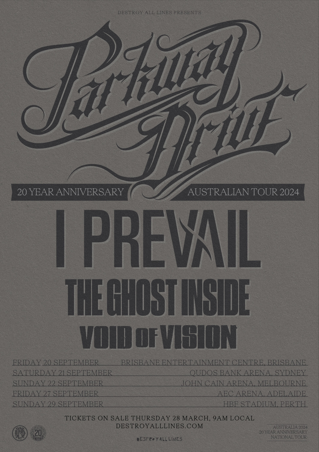 PARKWAY DRIVE ANNOUNCE 20 YEAR ANNIVERSARY TOUR WITH SPECIAL GUESTS I PREVAIL (USA) THE GHOST INSIDE (USA) + VOID OF VISION