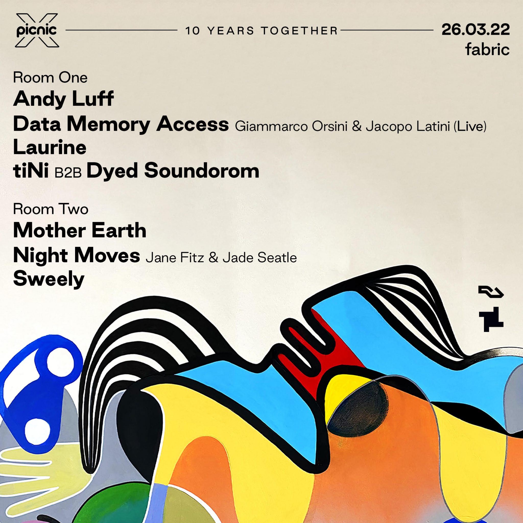 Picnic London presents a double room takeover at the UK’s most treasured clubbing institute, fabric, for their 10th birthday celebration. Having long held a place in the hearts of the capital’s raving circuit, as well as building a new community in pockets around Europe, they now set the bar even higher by marking their 10th year in style across fabric’s Room 1 and Room 2.