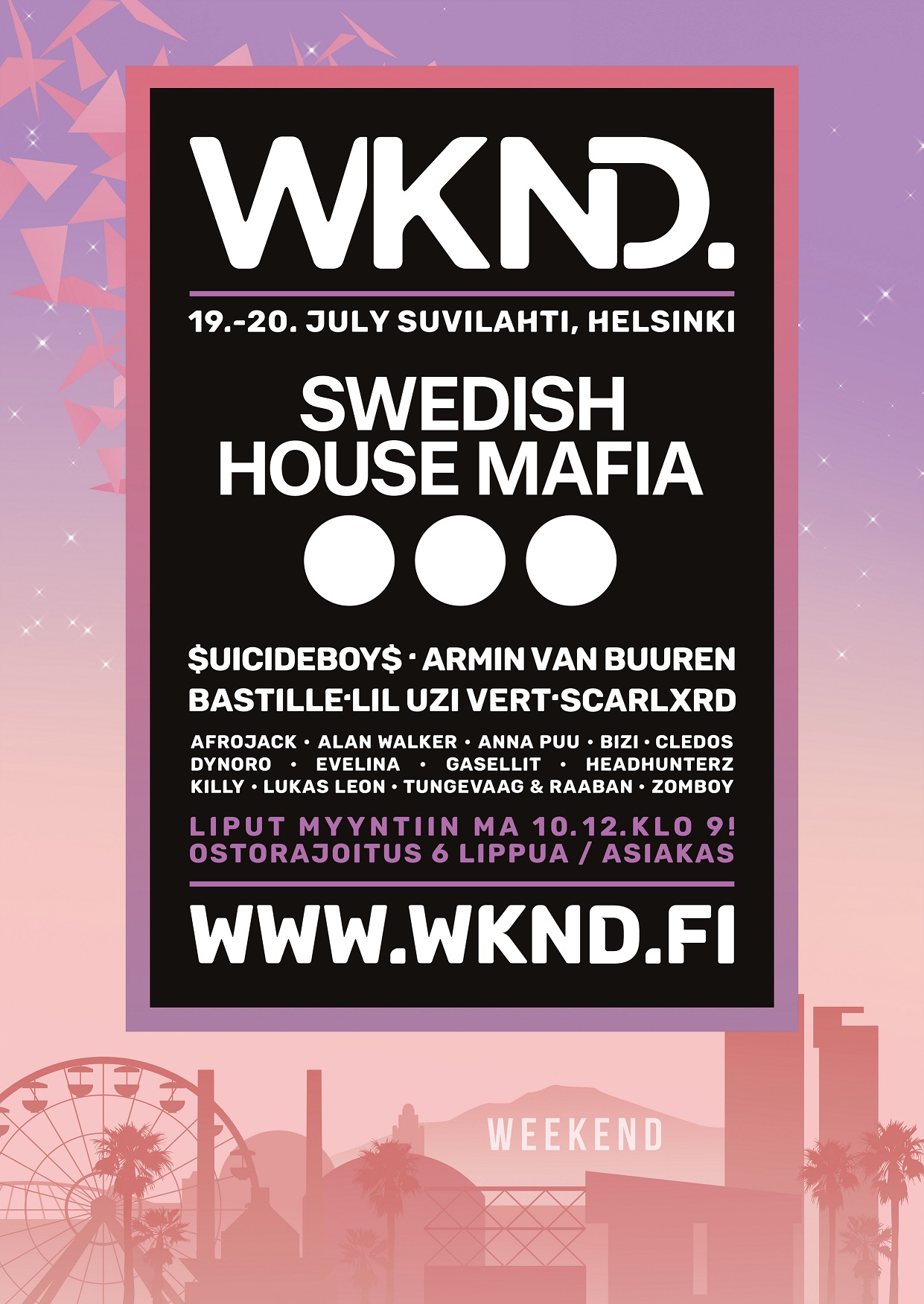 Held in a stunning urban location in Suvilahti, just minutes away from the city center of Helsinki, Weekend Festival combines high-production outdoor stages with stunning indoor arenas, all tieing into its annual theme. It was previously voted Finland’s best summer festival by listeners to major national radio station YleX, and has received nominations at the European Festival Awards and the Music & Media Industry Awards.