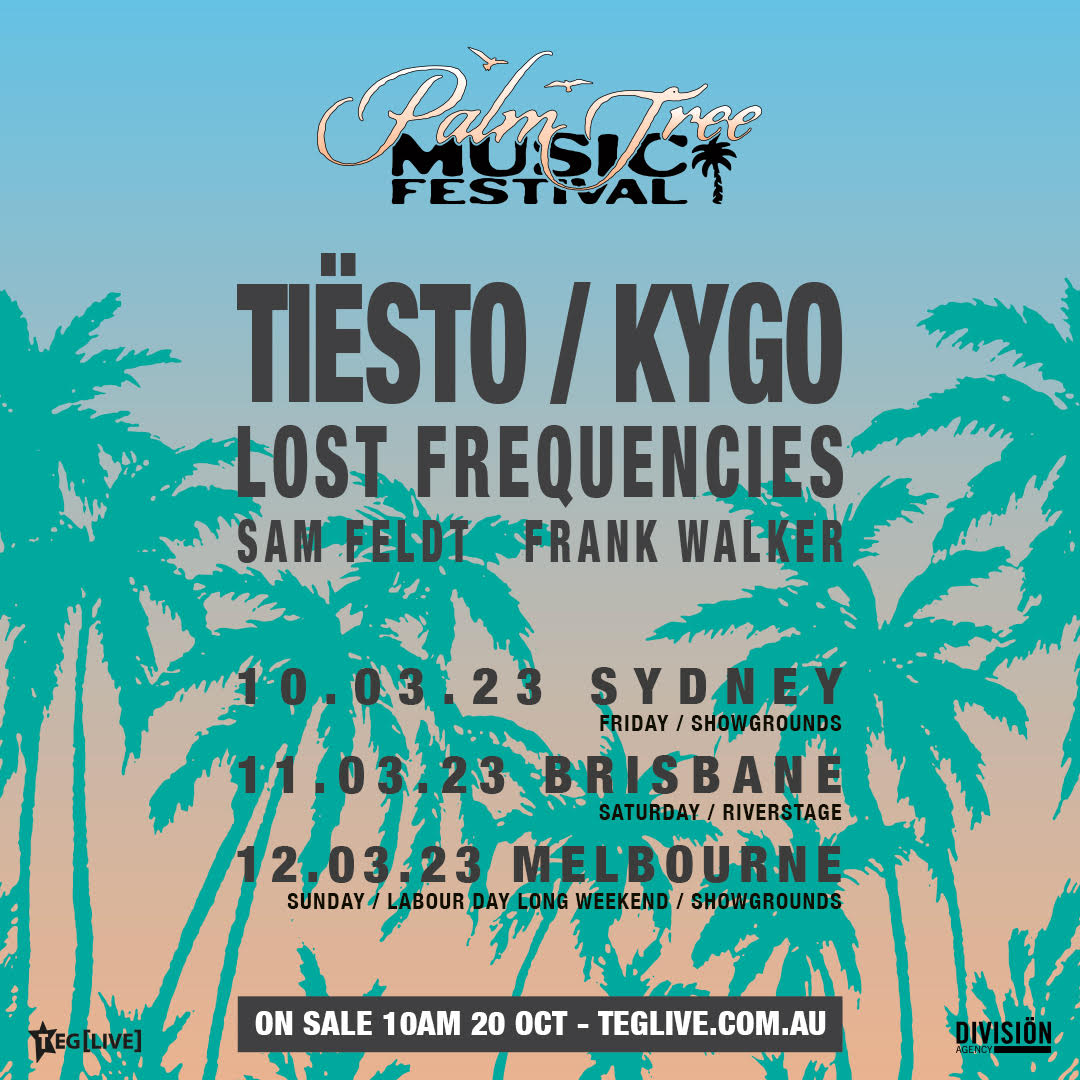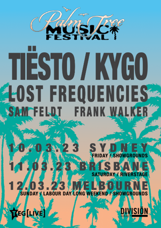 PALM TREE MUSIC FESTIVAL: TIËSTO, KYGO LOST FREQUENCIES, SAM FELDT, FRANK WALKER & MORE COMING TO AUSTRALIA!! PRESENTED BY: TEG LIVE & DIVISION AGENCY