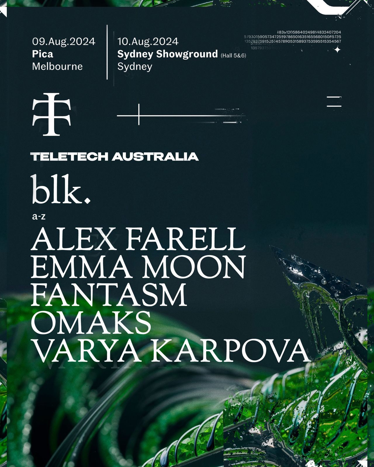 Returning to Melbourne’s PICA on Friday August 9th and upgrading to Sydney Showground on Saturday August 10th with blk. alongside a huge lineup including Fantasm, Omaks, Vanya Varpova and Australia’s Emma Moon.